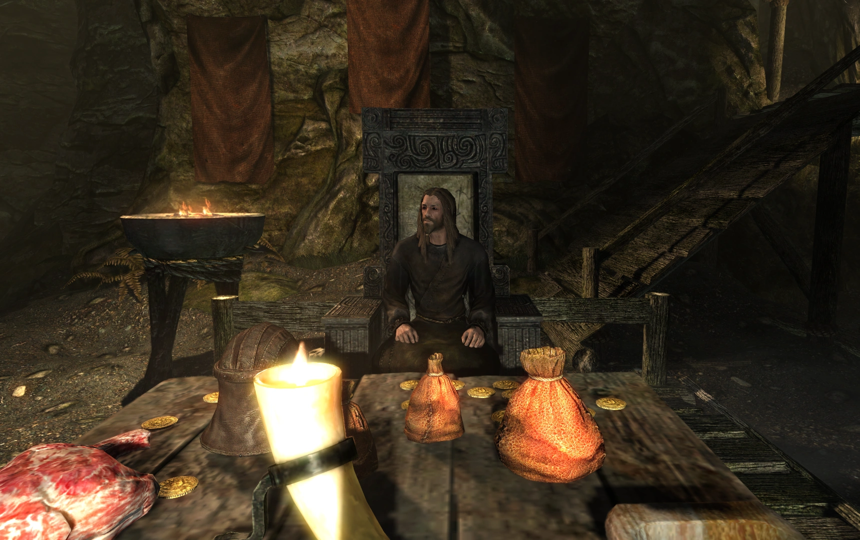 Morthal's Jarl asked me to investigate the house fire that killed Hroggar's wife and child. The vampire Alva enslaved Hroggar and had his family killed in a house fire. Alva's master in Movarth's Lair planned to enslave the entire town.